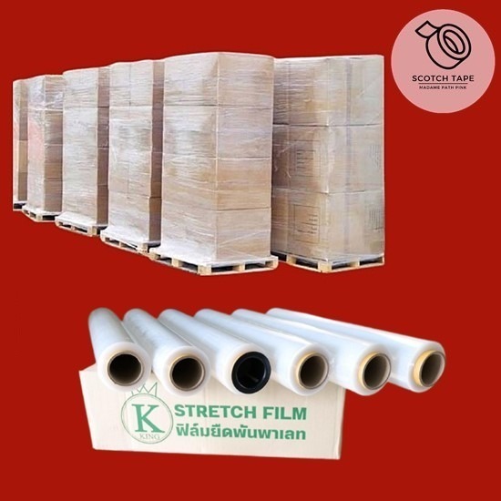 จำหน่ายฟิล์มยืด ฟิล์มพาเลทราคาโรงงาน ฟิล์มยืดยี่ห้อคิง (KING) ฟิล์มยืดพันพาเลทราคาโรงงาน เกรดพรีเมียม จำหน่ายราคาปลีก - ราคาส่ง ส่งฟรีทั่วประเทศ ยิ่งสั่งเยอะยิ่งถูก รุ่น สีใส 15x50xยืดได้ถึง 300 เมตร นน.1.64/ม้วน ( บรรจุ 6 ม้วน ) 15x25xยืดได้ถึง 300 เมตร นน.0.82 ม้วน ( บรรจุ 12 ม้วน ) รุ่น สีใส 17x50xยืดได้ถึง 500 เมตร นน.2.3 ( บรรจุ 6 ม้วน ) รุ่นสีดำ 15x50xยืดได้ถึง 200 เมตร นน.1.64ม้วน ( บรรจุ 6 ม้วน ) รุ่นสีดำ 15x25xยืดได้ถึง 200 เมตร นน.0.82 ม้วน ( บรรจุ 12 ม้วน ) รุ่น สีเขียว 15x50xยืดได้ถึง 200 เมตร นน.1.64ม้วน ( บรรจุ 6 ม้วน ) สีดำ ป้องกัดแสงยูวี5% และ ผลิตจากเม็ดพลาสติก LLDPE